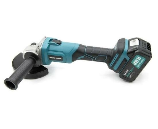Аккумуляторная УШМ БОЛГАРКА PROFI POWER. Оснащённая БЕСЩЕТОЧНЫМ двигателем, что гарантирует долгий срок службы. В КОМПЛЕКТЕ 2 АККУМУЛЯТОРА + зарядное устройство. Модель поддерживает ТРЕХСТУПЕНЧАТУЮ регулировку скорости вращения (5700, 7200, 9100 об/мин). Также на корпусе размещён ИНДИКАТОР заряда аккумулятора и указатель выбранной скорости вращения вала. Важным преимуществом является то, что в качестве источника питания используется литий-ионная (Li-ion) батарея напряжением 18В. В комплекте поставляется 2-е батареи на 4Ач