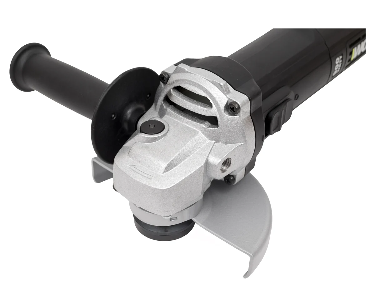 Угловая шлифмашина WORX Professional WU926 представляет собой надежный инструмент для профессионального использования, обладающий мощностью 900 Вт. Она оснащена щеточным двигателем и поддерживает постоянное число оборотов в 12000 об/мин, что обеспечивает стабильную и эффективную работу. Удобство использования повышает сдвижная клавиша включения, а возможность регулировки положения кожуха без инструмента облегчает настройку. Блокировка шпинделя при заклинивании диска повышает безопасность работы. Компактный вес в 1.5 кг и длина кабеля 2.5 м делают шлифмашину удобной в обращении и мобильной.