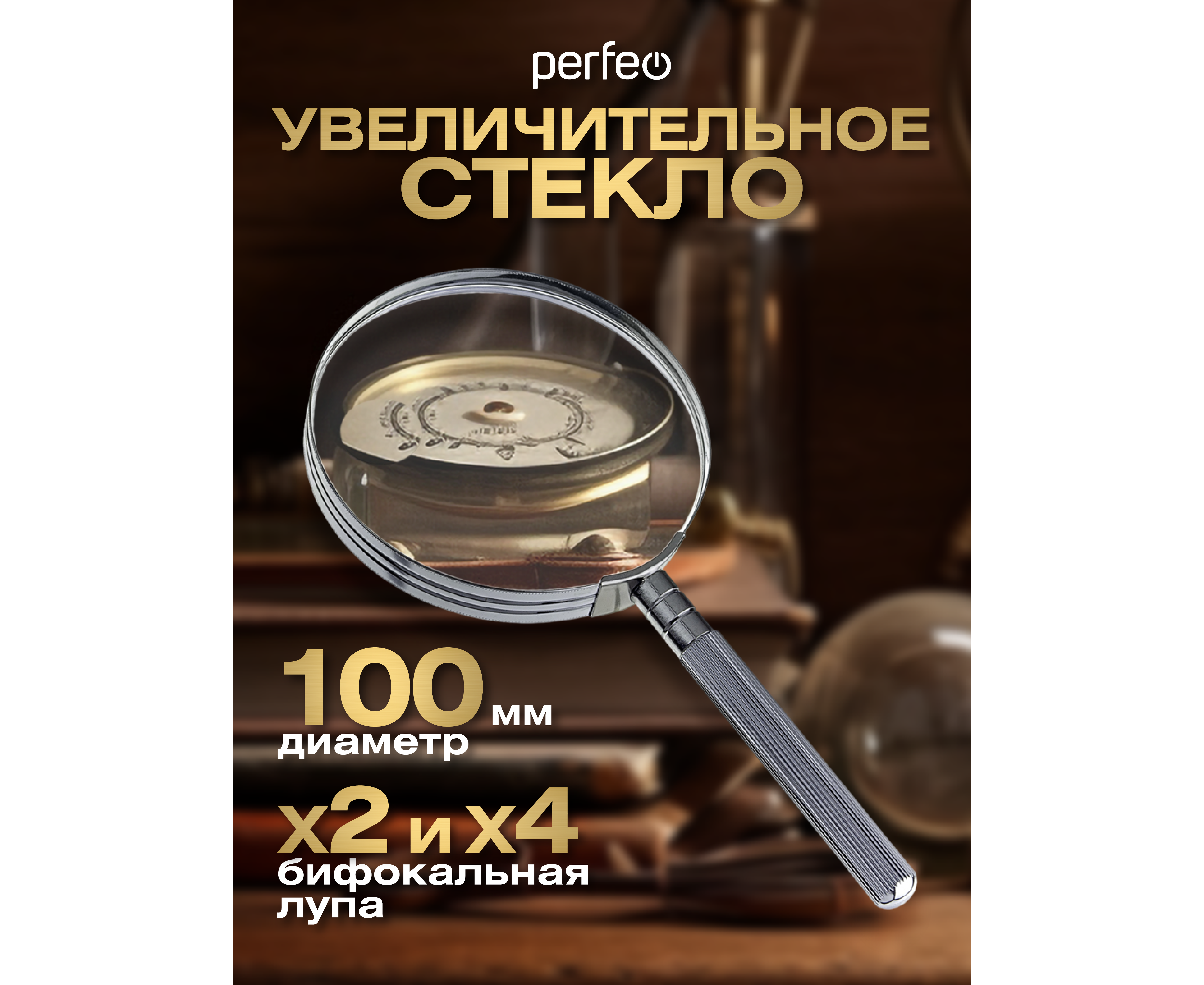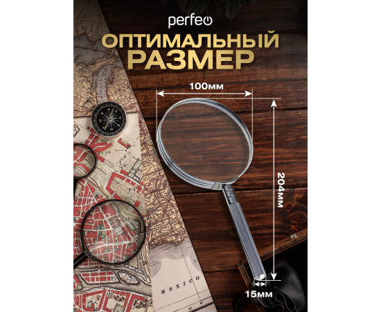 Увеличительное стекло (Лупа) Perfeo PF-SC9000 бифокальная 2х,4х, 4"(100 мм), металл, (Арт. PF_D0102)