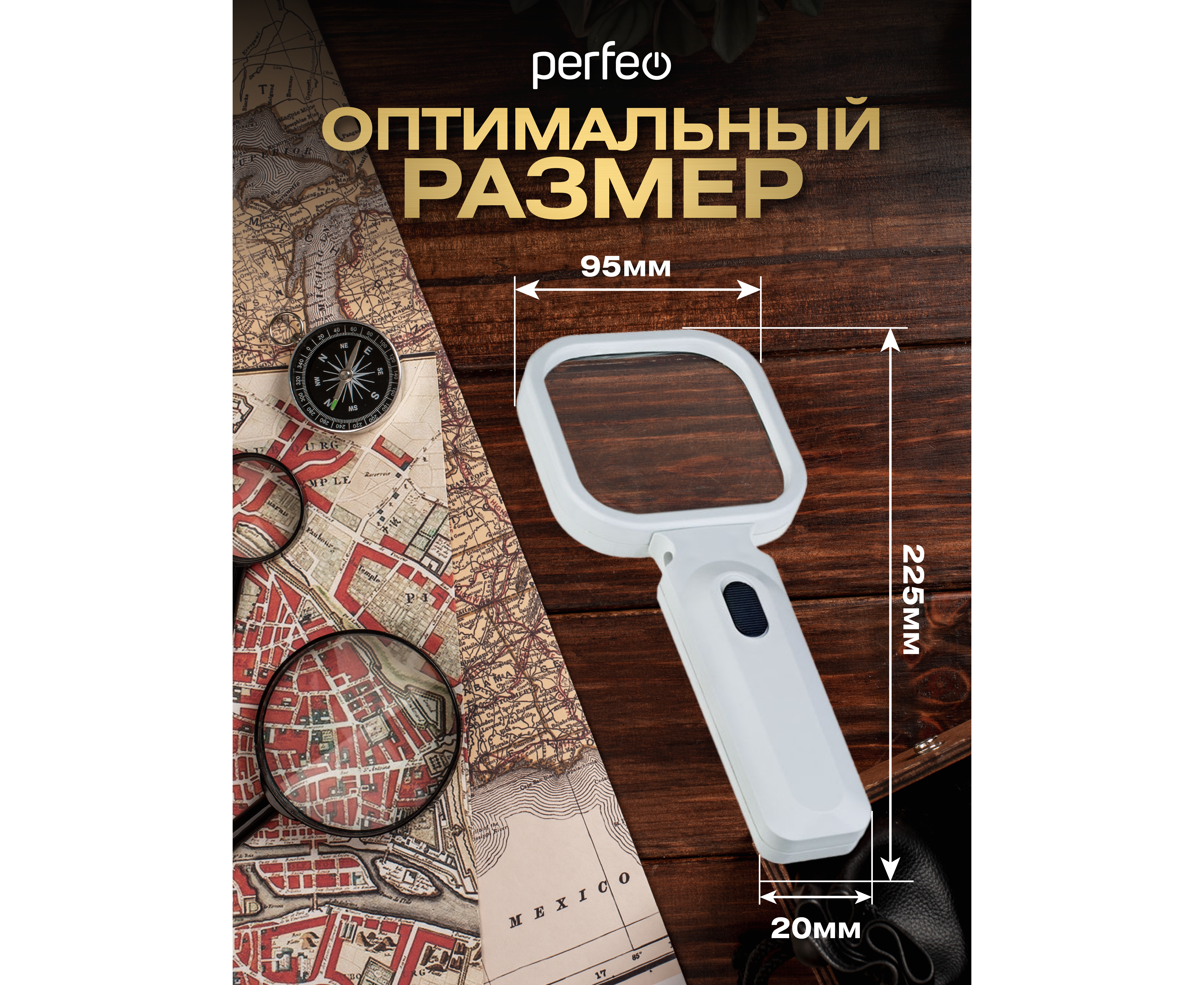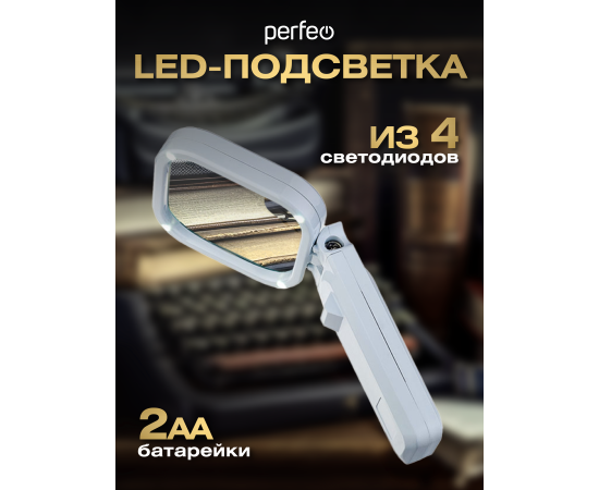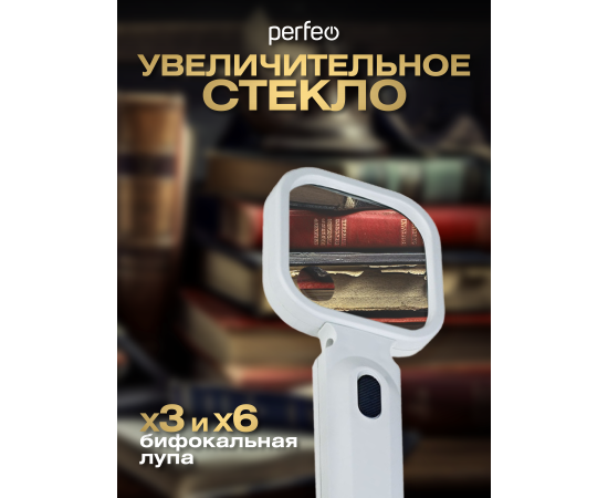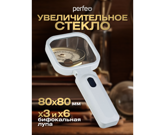 Увеличительное стекло (Лупа) Perfeo PF-ZM8080 белый, бифокальная 3х,6х, 80х80 мм, подсветка, пластик, (Арт. PF_D0115)