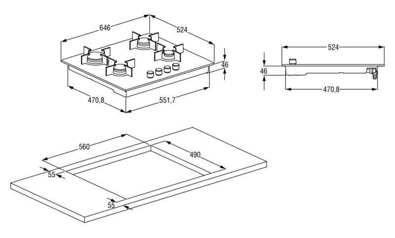 Панель конфорок: закаленное стекло