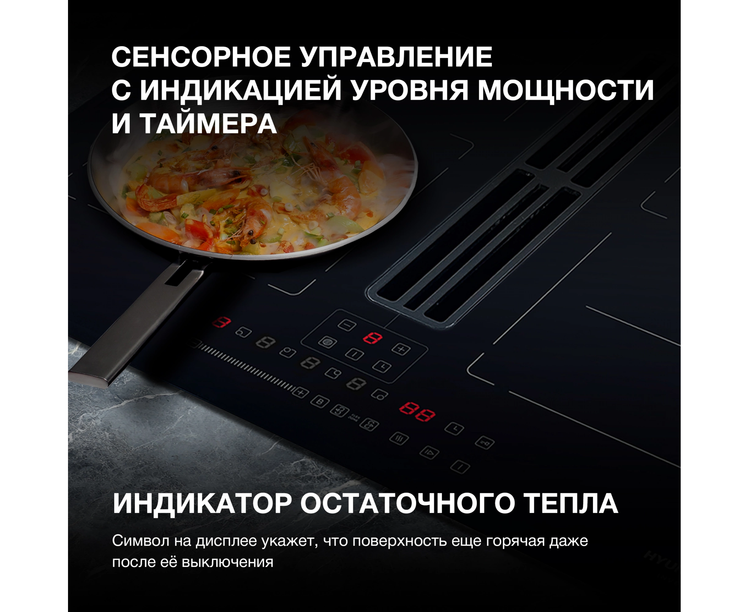 индикатор остаточного тепла, кнопка блокировки панели