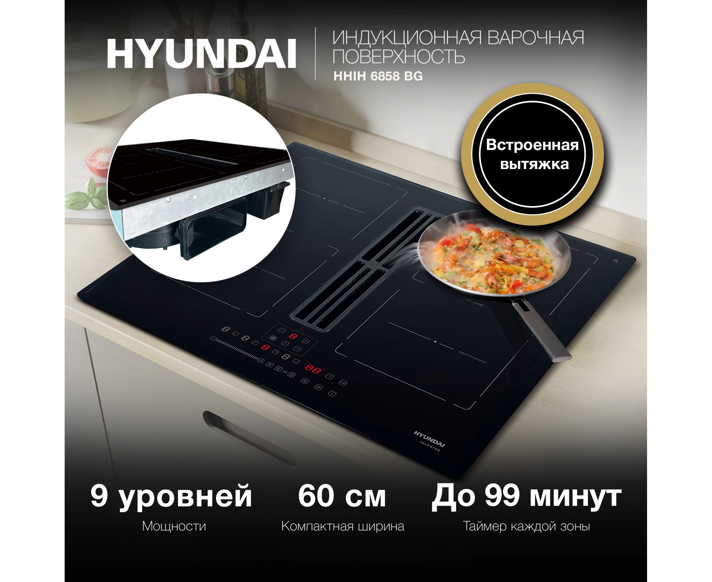 Варочная поверхность Hyundai HHIH 6858 BG черный
