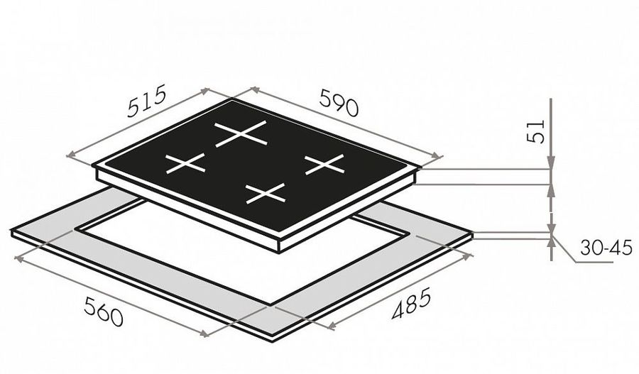 Размеры ниши для встраивания (ШхГ): 560 х 485 мм