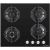 независимая; общая мощность конфорок 7400Вт; количество конфорок — 4; поверхность закаленное стекло; решетка чугун; автоматический электроподжиг; ширина — 590мм; цвет — черный