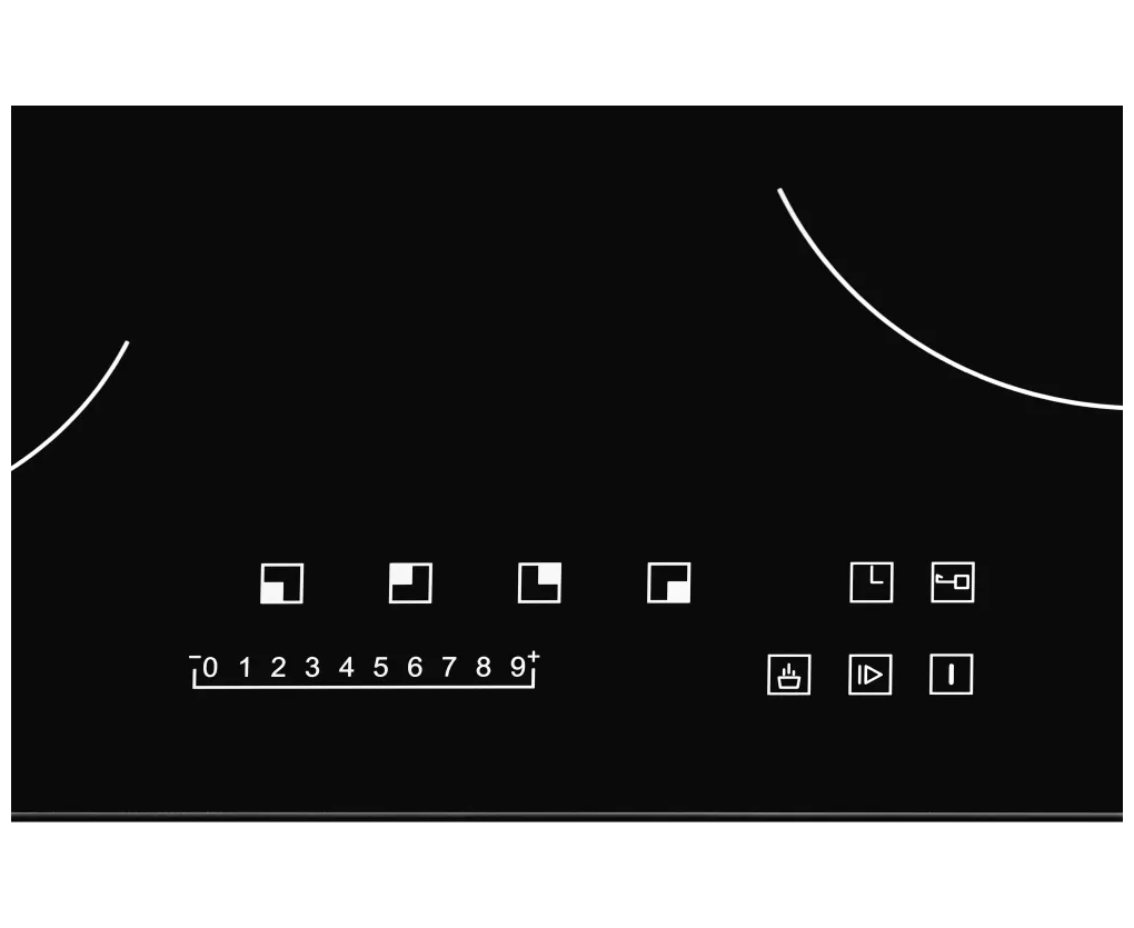 защитное отключение конфорок, индикатор остаточного тепла, кнопка блокировки панели