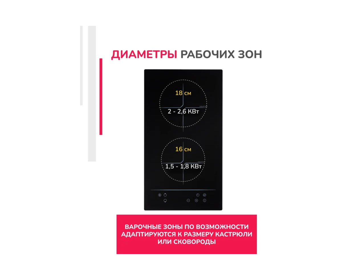 Диаметр каждой конфорки