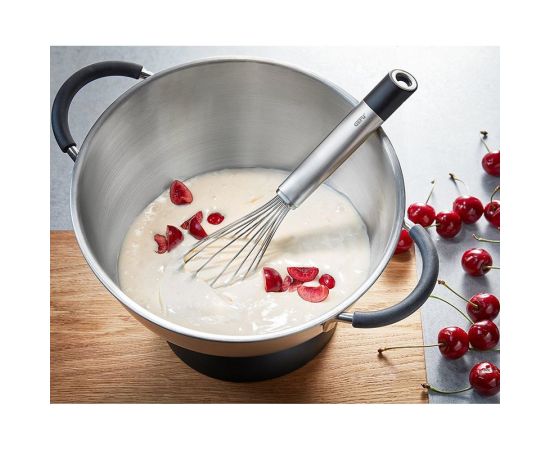 Прочные прутья венчика легко взбивают сливки, яичный белок, пудинги, соусы и прочие продукты в считанные минуты.