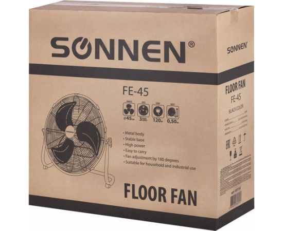 Вентилятор напольный SONNEN Fe-45a повышенной мощности, d-45см, 120Вт, 3 скорости, черный