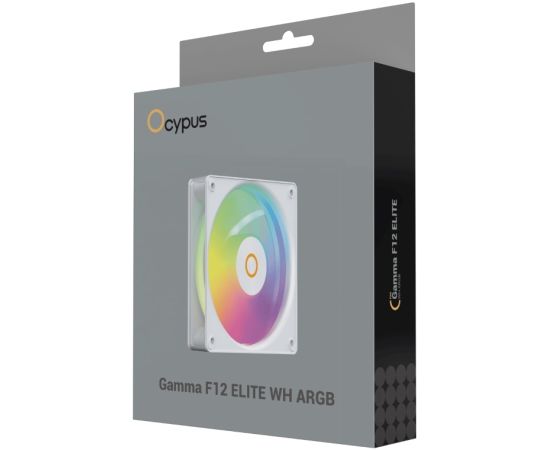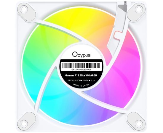 Вентилятор Ocypus Gamma F12 Elite WH ARGB, 120x120x25mm, 4-Pin PWM, 600-1800 RPM, 26 DBA Max, Hydro Bearing