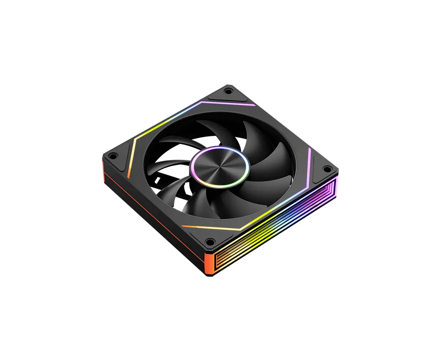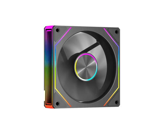 Вентилятор для корпуса PCCooler FG120 ARGB BK (120×120×25мм) с яркой ARGB-подсветкой, гидродинамическим (FDB) подшипником и диапазоном скорости 800–1800RPM обеспечивает воздушный поток до 54CFM при умеренном шуме, способен работать тихо в обычном режиме (~18–33дБ) и эффективно охлаждать систему на пике
