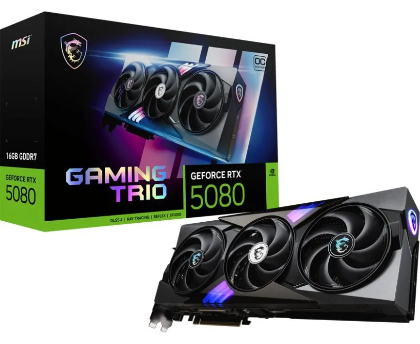 Видеокарта MSI RTX5080 GAMING TRIO OC 16GB GDDR7 256bit 3xDP HDMI 3FAN RTL