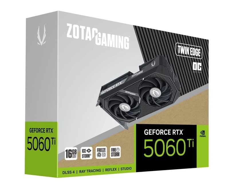 Видеокарта Zotac Nvidia GeForce RTX 5060TI 16GB Twin Edge OC (zt-b50620h-10m), GDDR7, OC, Ret