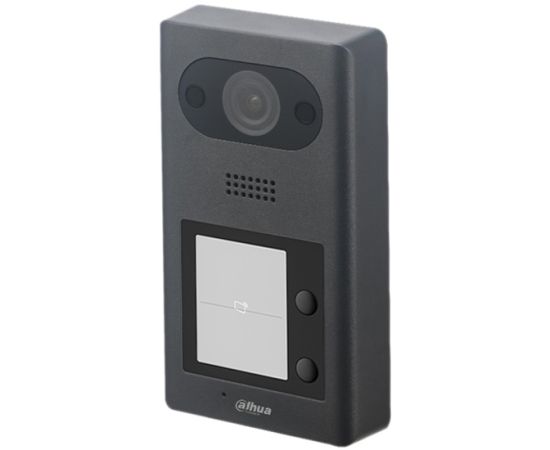 Вызывная панель с разрешением камеры 2мп и CMOS сенсором, угол обзора по горизонтали 134 градуса, алюминевая панель, уровень защиты IP65, IK08. Поддержка режима Ночь и голосового оповещения. Групповые вызовы. Видео и аудио сообщения. С двумя кнопками. Удаленный доступ через мобильное приложение DMSS. Установка на стену. Питание: DC 12V, PoE(802.3af)