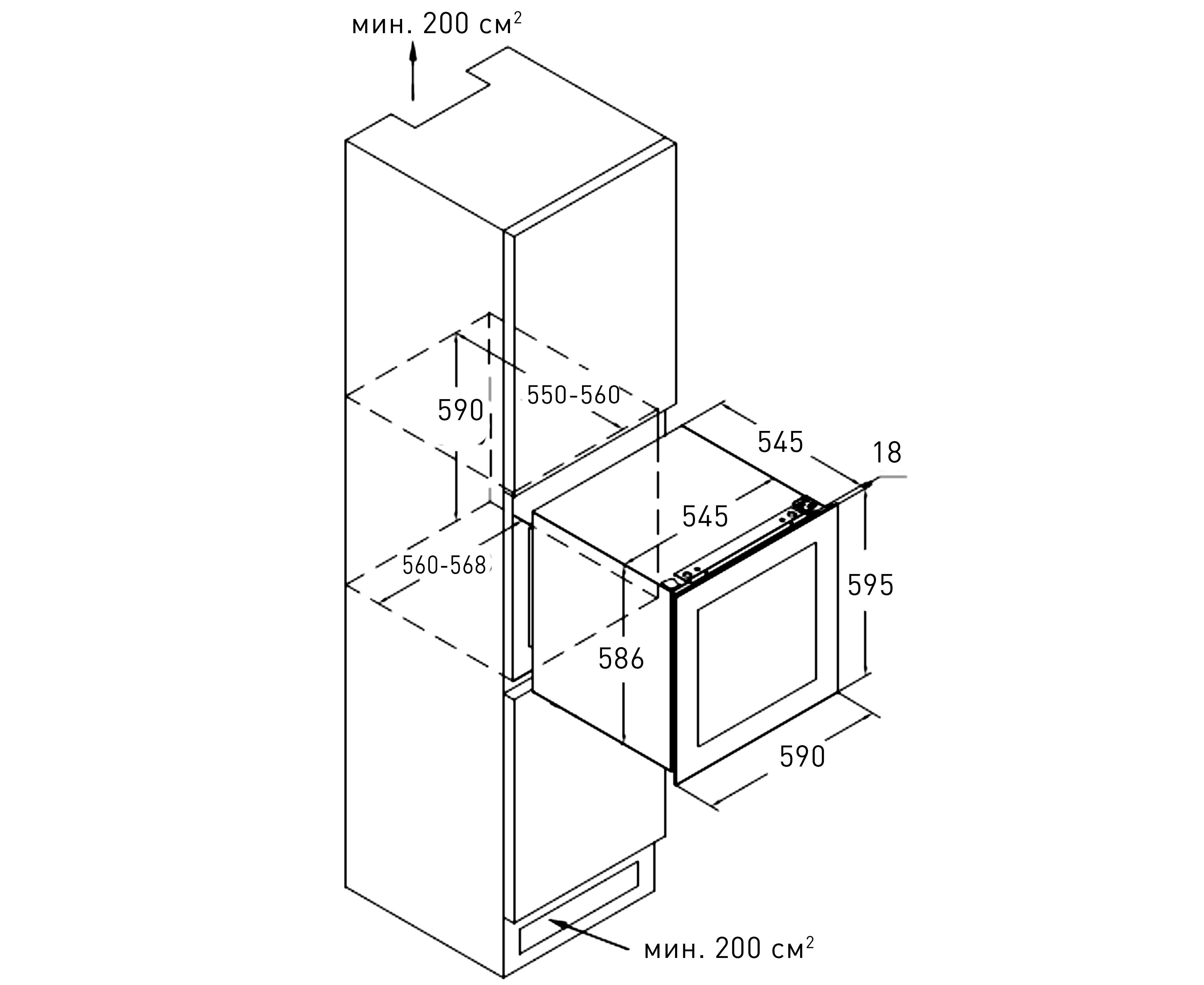 Размеры ниши для встраивания (ВхШхГ) (см)