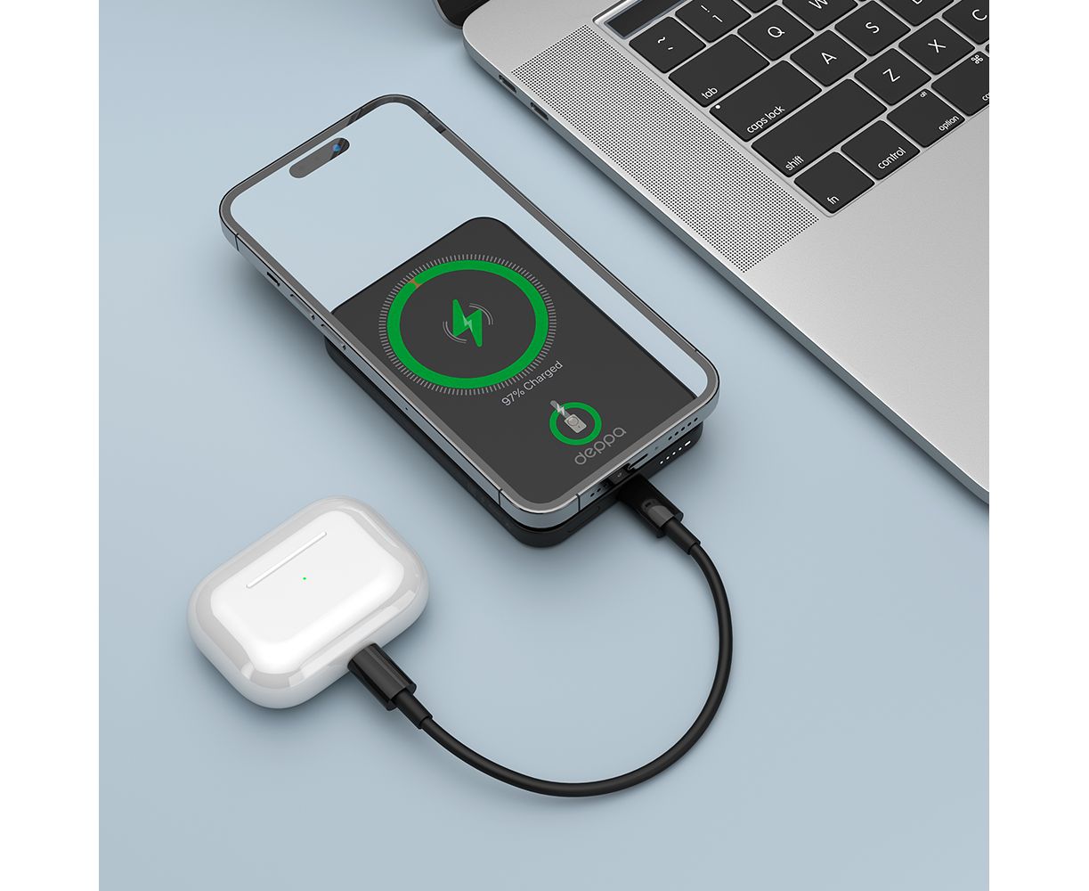 Совместимость: Совместим с IPhone 12 и новее, а так же со всеми смартфонами и наушниками с поддержкой заряда QI, со всеми мобильными устройствами с питанием от USB