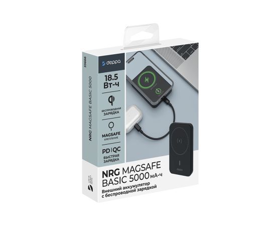 Внешний АКБ NRG MageSafe 5000 мА-ч Basic, 15Вт QI, черный, Deppa