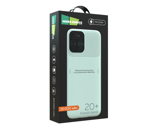 Внешний аккумулятор 20000mAh 1USB 3.0A 22.5W PD More choice PB55-20 с кабелем (White)