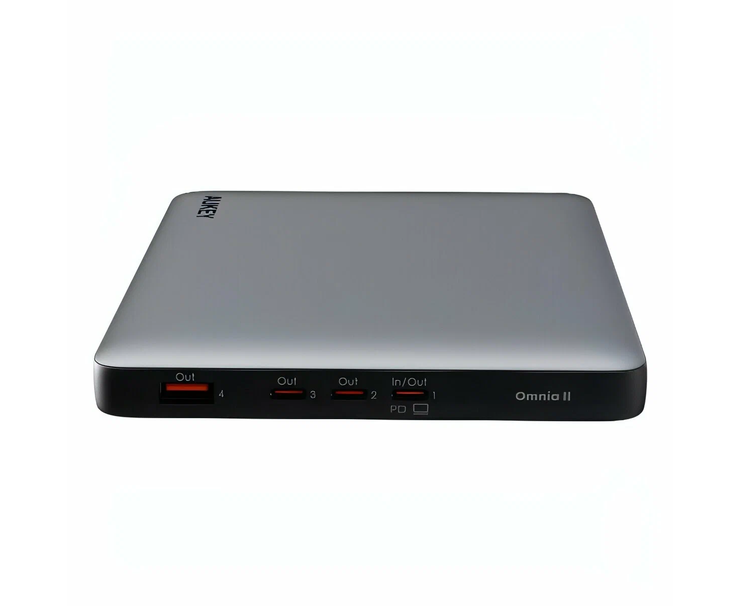 Серый внешний аккумулятор Aukey Sprint X 20000 100W (PB-Y44) оснащен функцией сквозного заряда, позволяющей пополнять энергию другой батареи во время заряда своей.