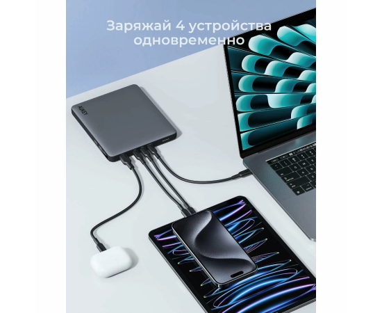Мощность - 100 Вт; Разъемов USB Type-C - 2 шт.; Сквозная зарядка