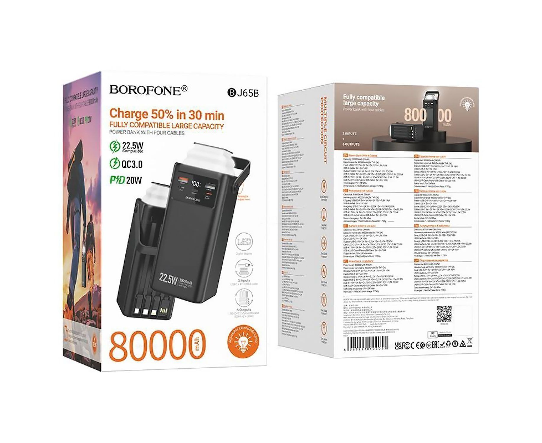 Внешний аккумулятор Borofone BJ65B High 22.5W+PD20W 80000mAh USB/Type-C/Lightning/USB*2/Type(239587)