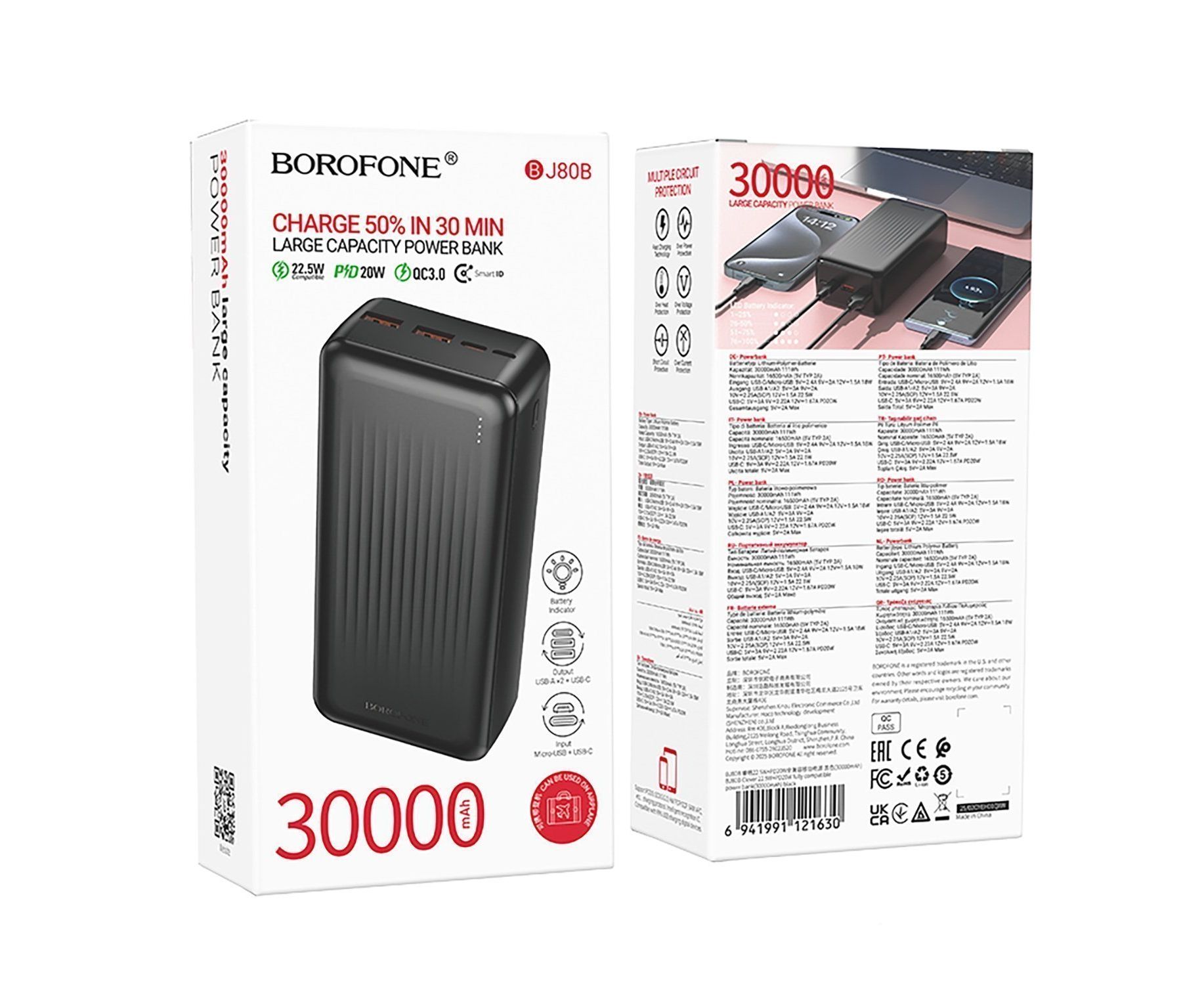 Внешний аккумулятор Borofone BJ80B 22.5W+PD20W 30000mAh Micro/Type-C/USB*2/Type-C (black)(242761)