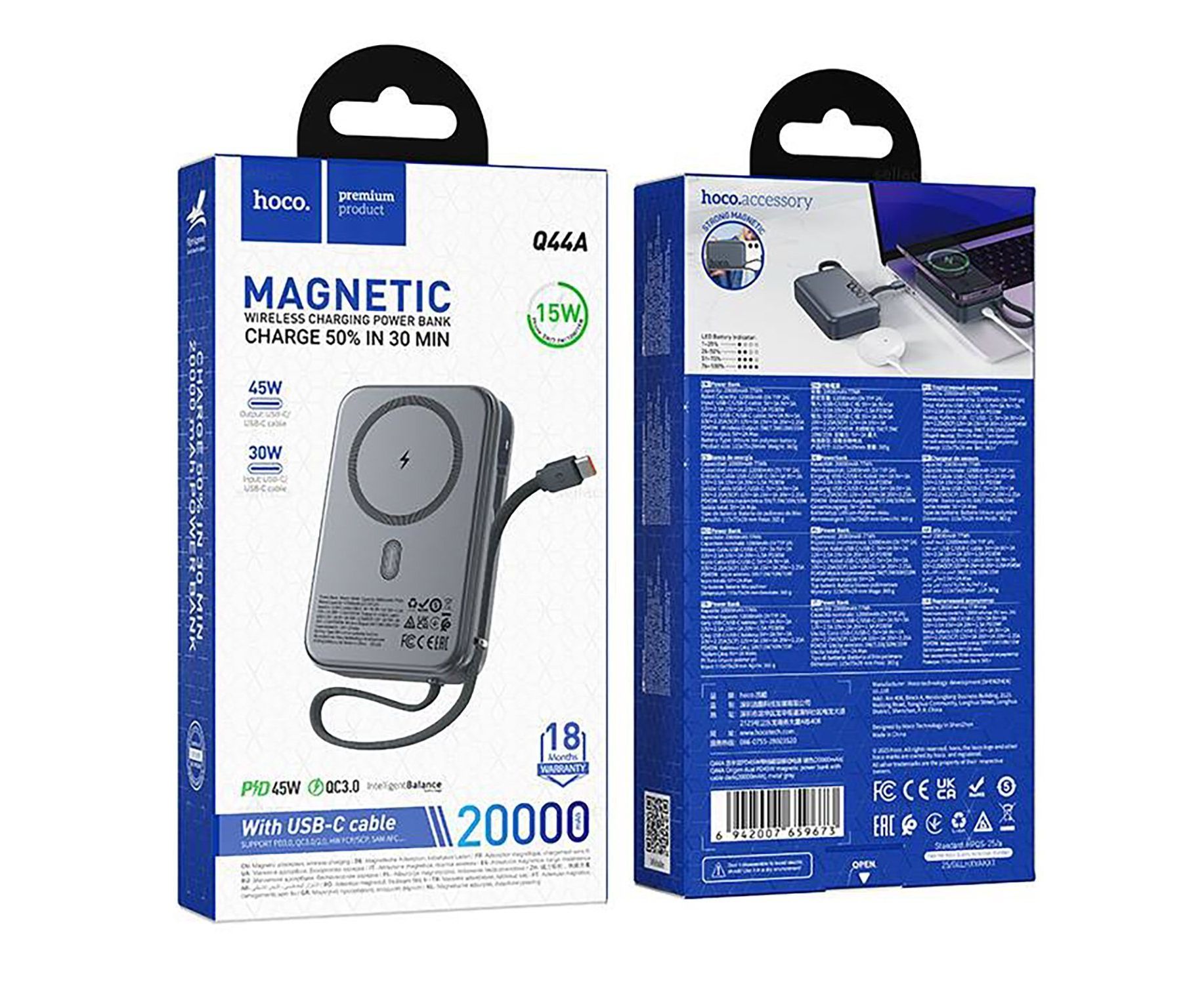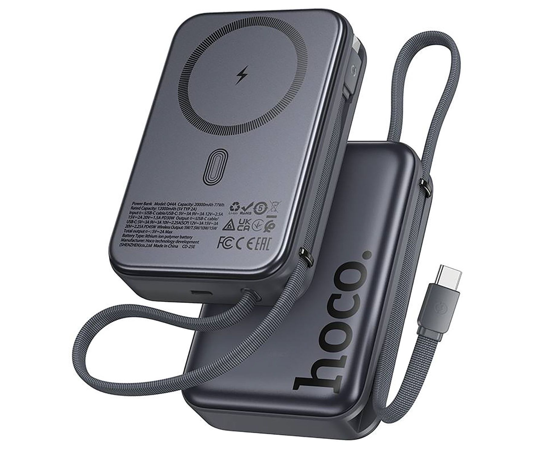 Внешний аккумулятор Hoco Q44A Origen PD45W 20000mAh Type-C/Type-C/SafeMag (metal gray)(240960)