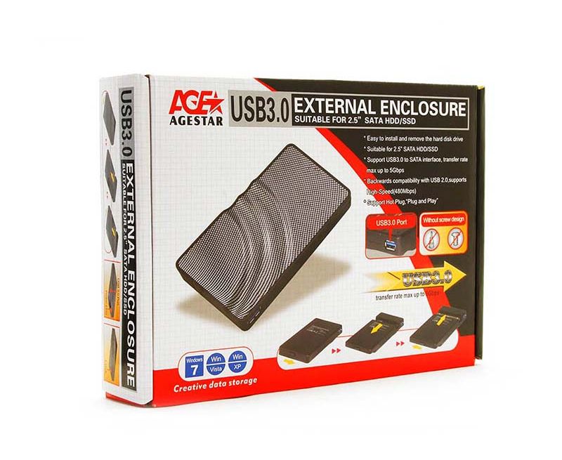 Внешний корпус для HDD AgeStar 3UB2P SATA пластик/алюминий серебристый 2.5"