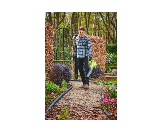 Бесщеточная воздуходувка Ryobi ONE+ 18В RY18BLXC-0 5133005355 предназначена для использования только вне помещений, в сухом, хорошо освещенном месте. Изделие предназначено для сдувания листьев, травы и другого легкого садового мусора.