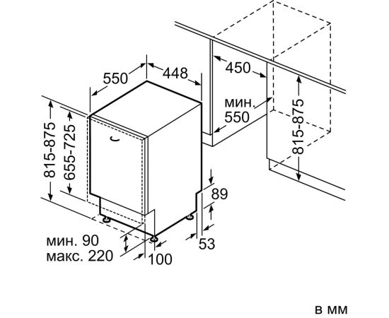 Высота ниши для встраивания(мин)
