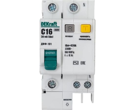 Технические характеристики DEKraft со встроенной защитой 1п+N 16А 30мА AC C 15157DEK