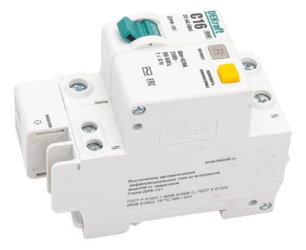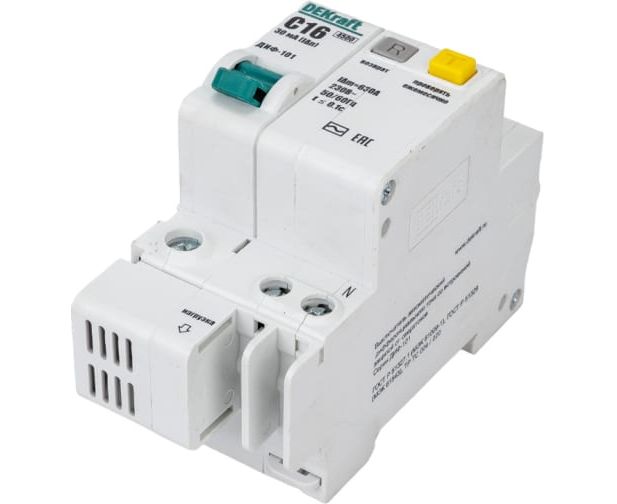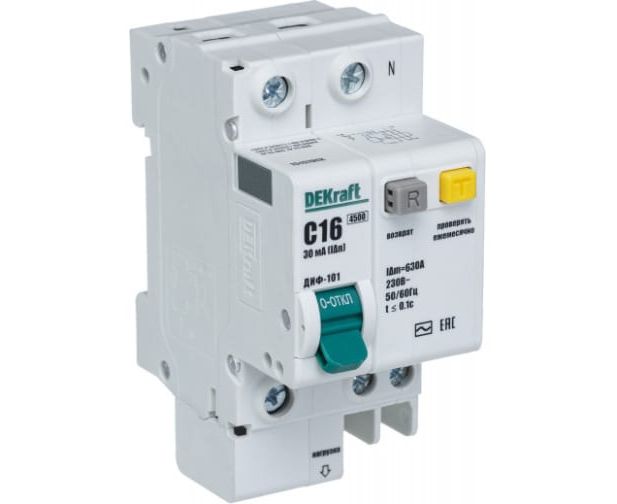 Выключатель автоматический дифференциального тока DEKraft 15157DEK со встроенной защитой 1п+N 16А 30мА AC C
