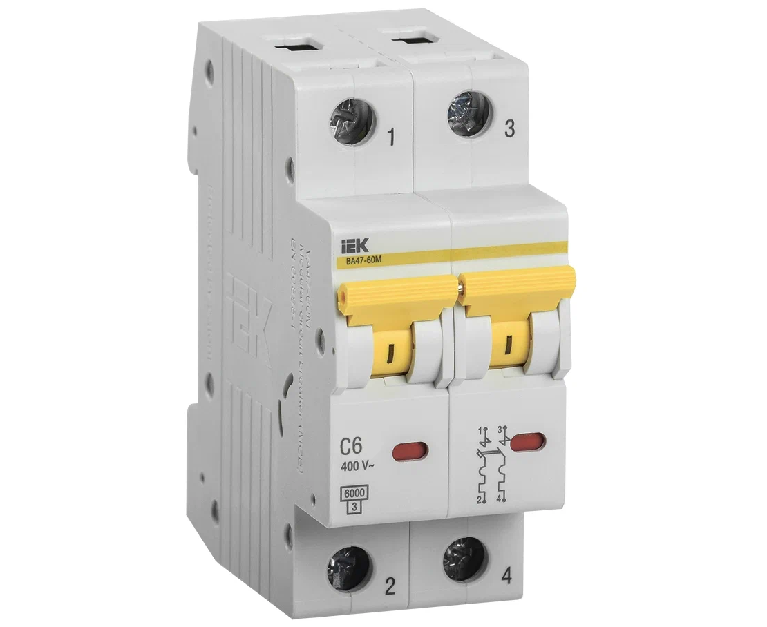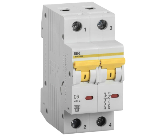 Выключатель автоматический IEK ВА47-60M (MVA31-2-006-C) 2Р 6А 6кА С
