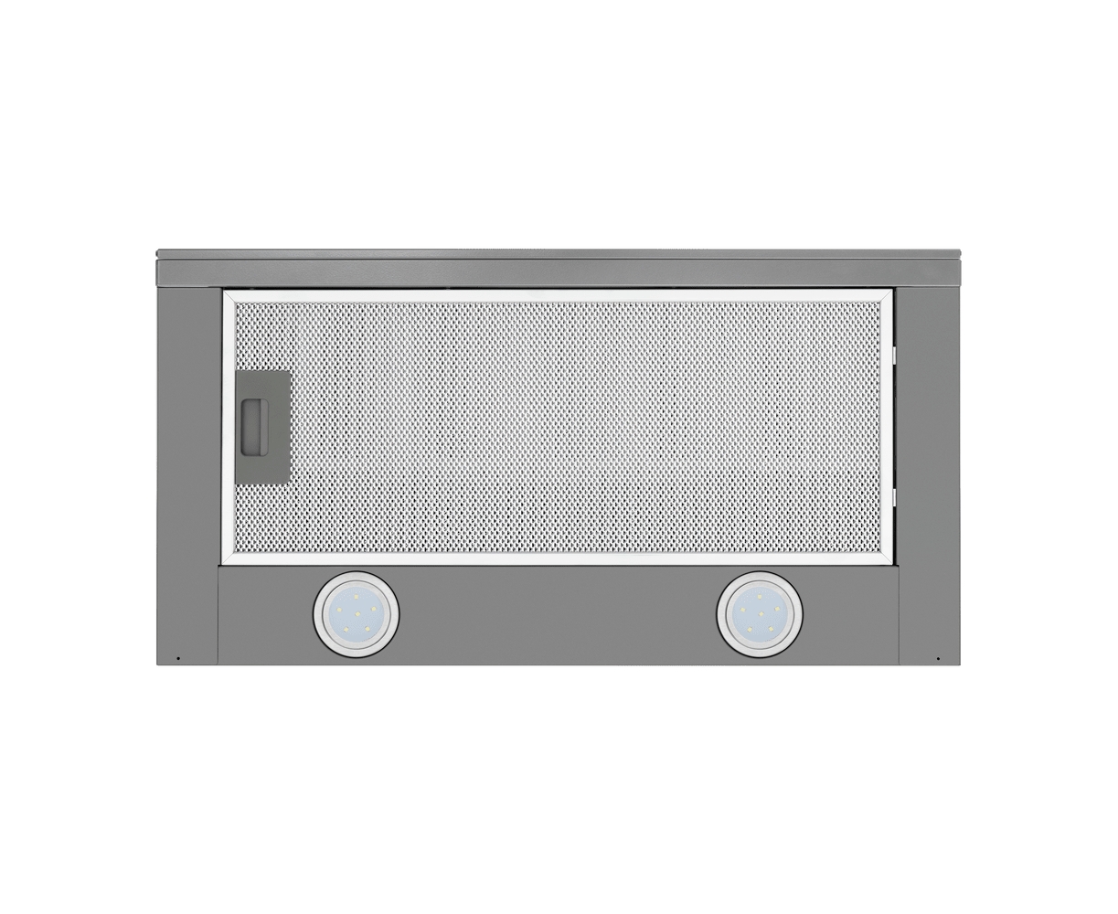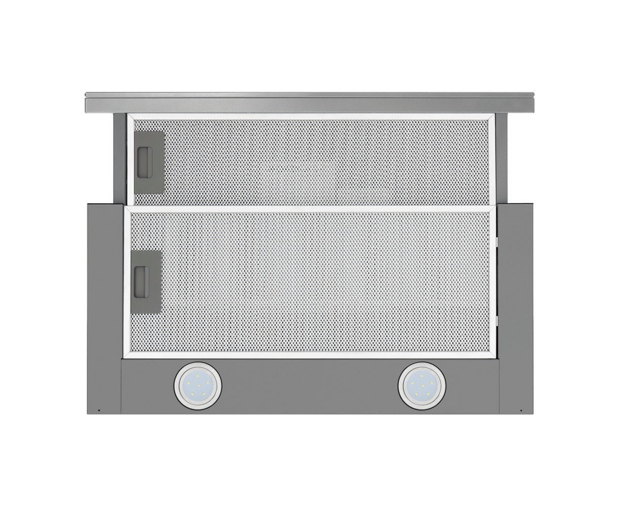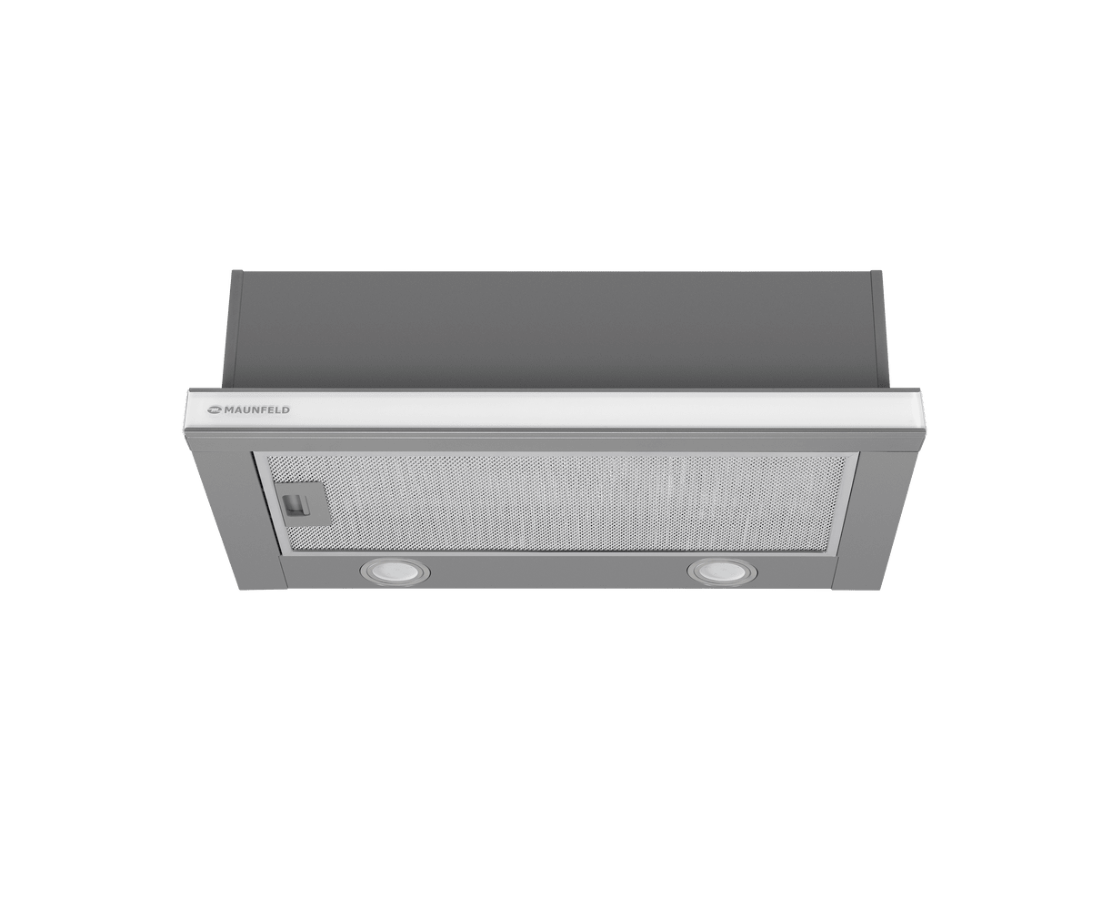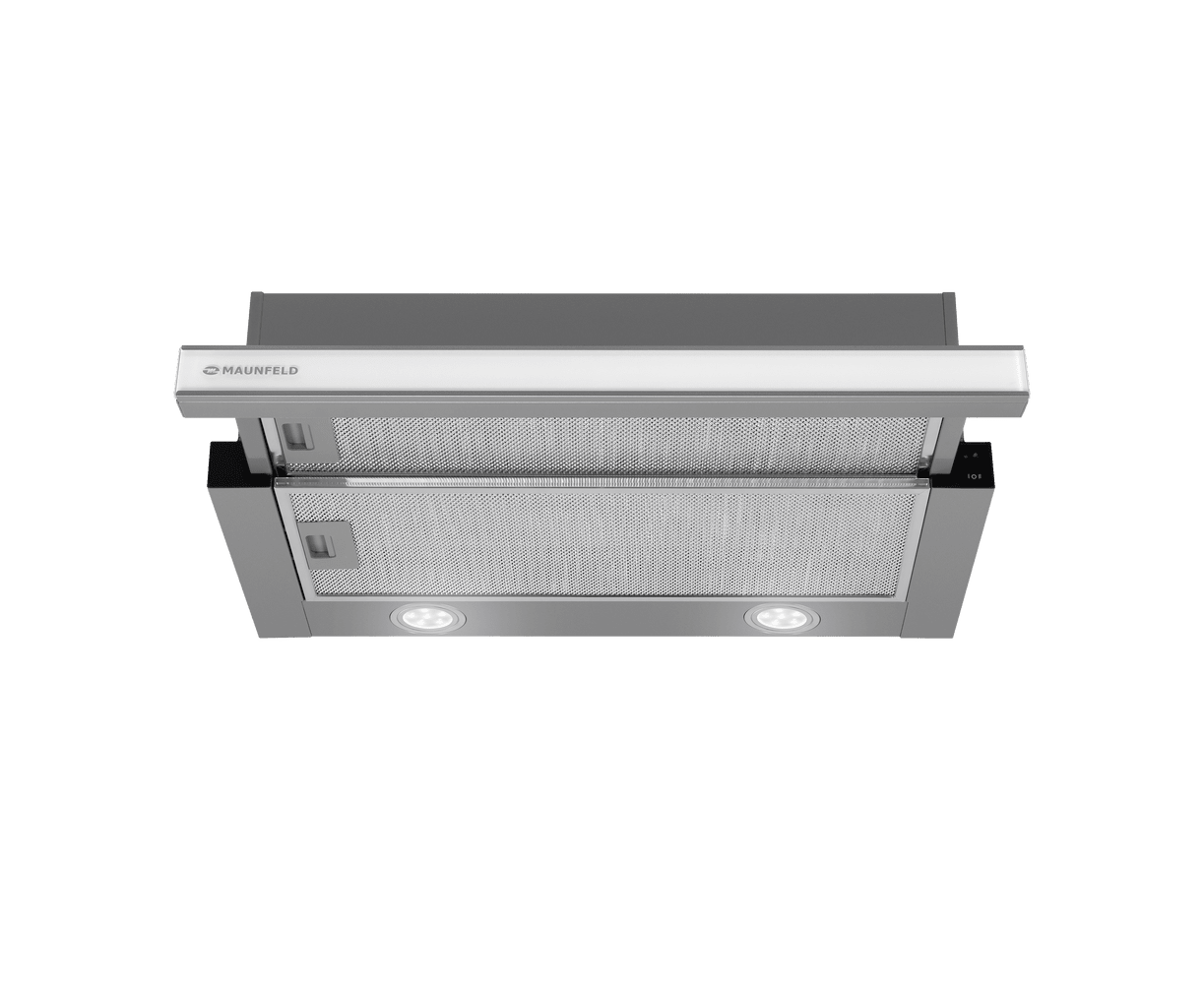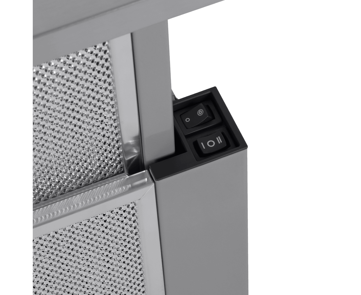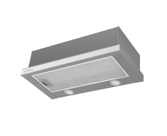 Эту телескопическую вытяжку можно встроить в кухонный шкаф, чтобы она не занимала много места на кухне. Встраиваемая модель при достаточно компактных габаритах (ширина рабочей панели 60 см) показывает довольно высокую производительность – до 620 м3/час.