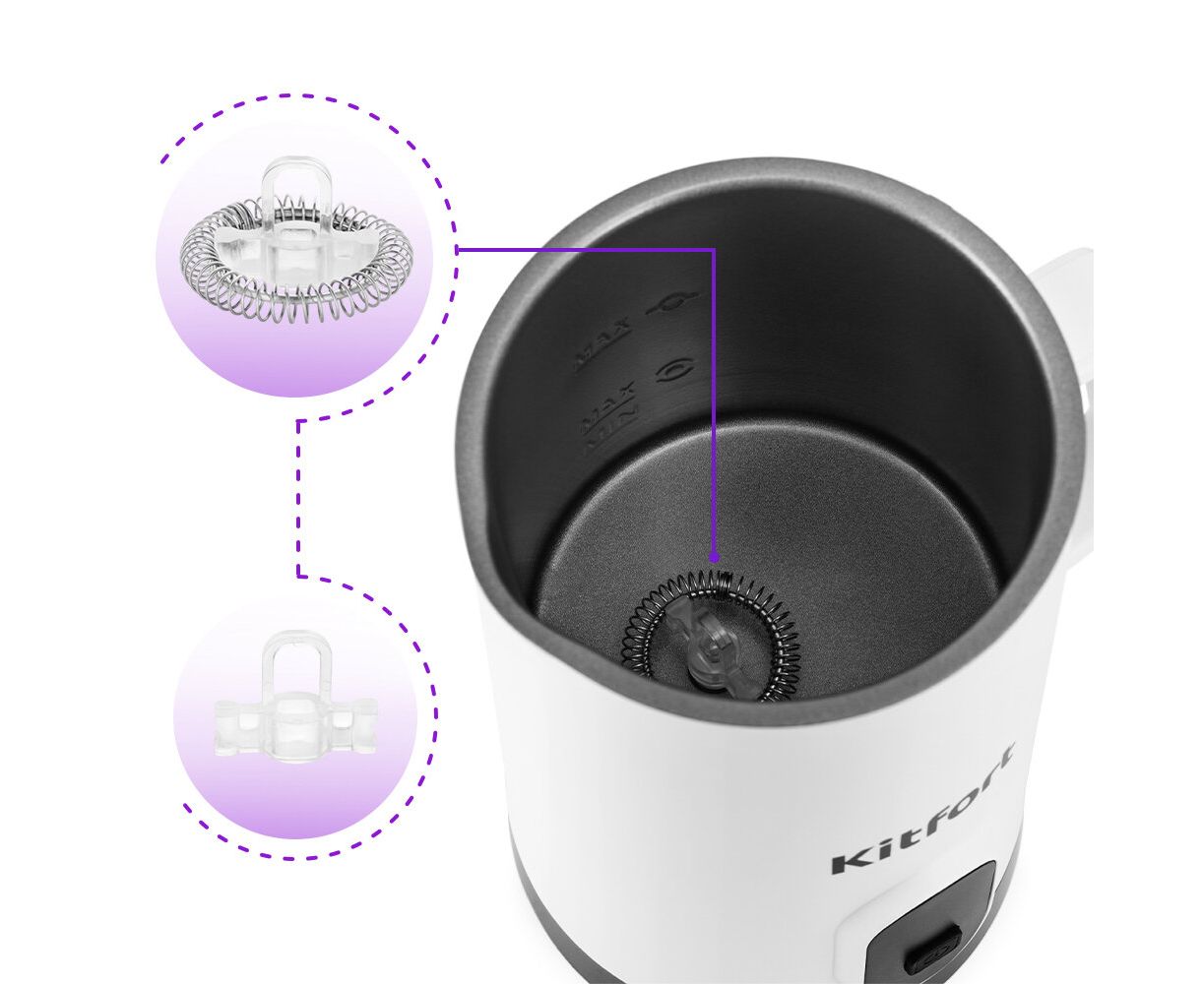 Капучинатор КТ-7177 — устройство для приготовления молочной пенки, используемой для напитков на базе эспрессо: капучино, латте и латте макиато. КТ-7177 — идеальный выбор для приготовления плотной и однородной молочной пены для любимых напитков!