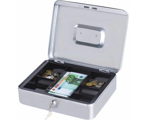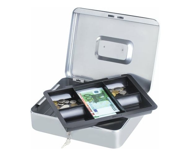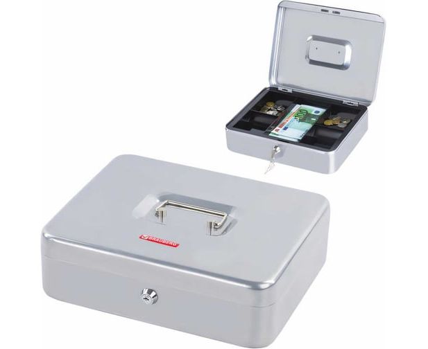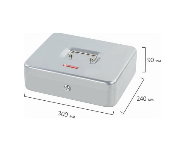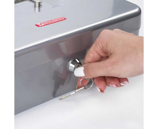 Ящик для денег BRAUBERG 291060 90х240х300мм, ключевой замок, серебристый