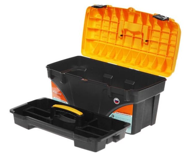 Ящик для инструментов 21 Prof Sturm TBPROF221 используется для хранения и транспортировки ручного инструмента. Удобство эксплуатации обеспечивается за счет прочного пластика.