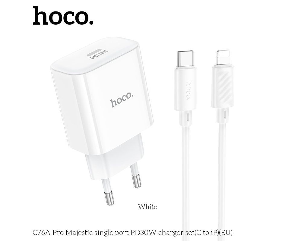 Зарядка Hoco C76A Pro Majestic single port PD30W charger set (Type-c to IP) - White