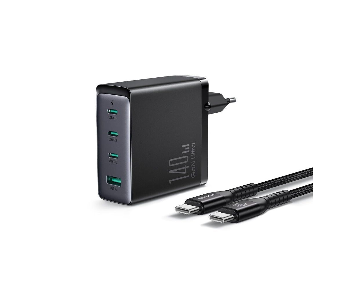 Зарядка JoyRoom GaN Ultra JR-TCG05EU 140W 3C1A Fast Charger-Black+240W C to C Cable 1.2m-Black (EU)
