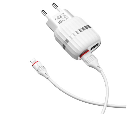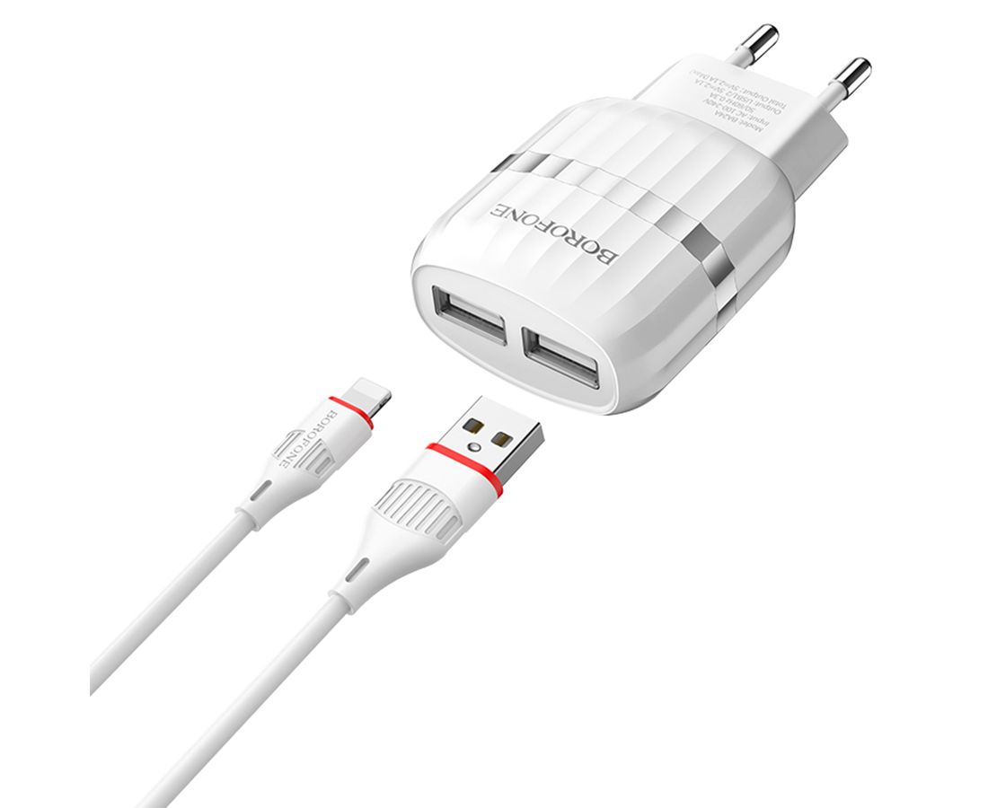 Сетевое зарядное устройство BOROFONE BA24A Vigour 2xUSB с Кабелем USB - Lightning, 2.4A, белый