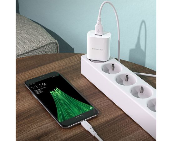 Сетевое зарядное устройство BOROFONE BN1 Innovative 1xUSB с Кабелем USB - Micro, 2.1A, белый