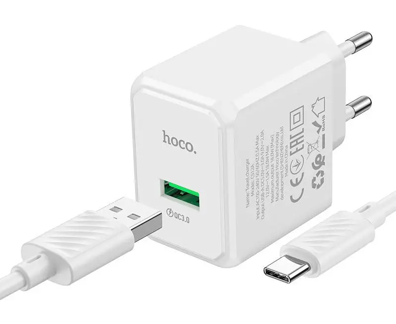 Зарядное устройство HOCO CS12A Ocean 1USB 18Вт, QC, FCP, AFC, кабель Type-C белый