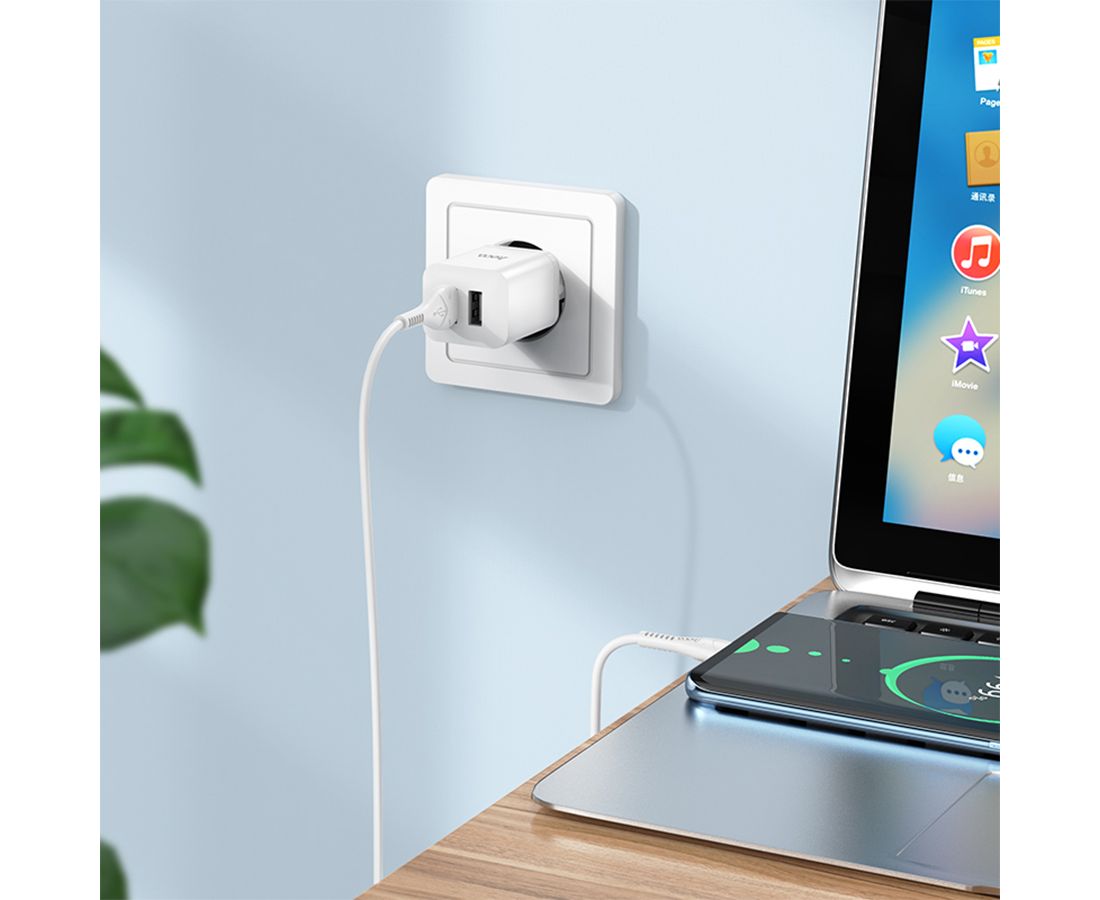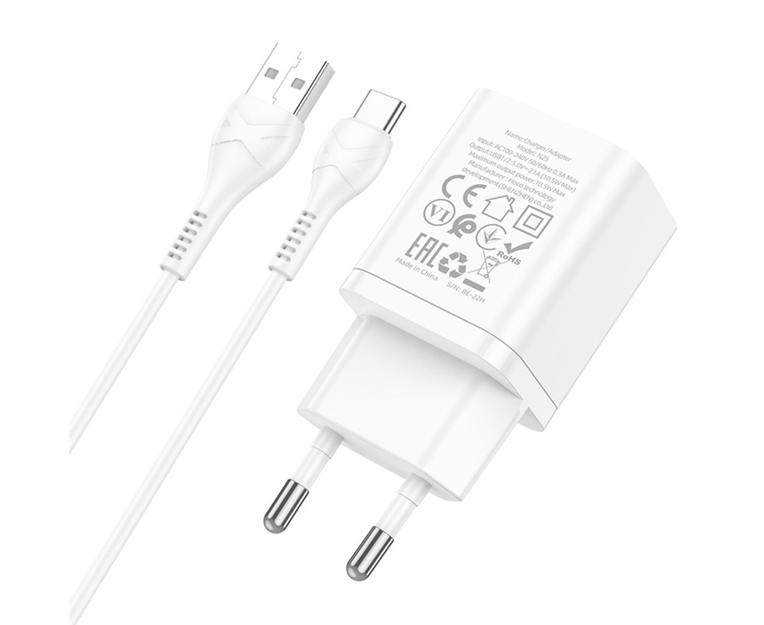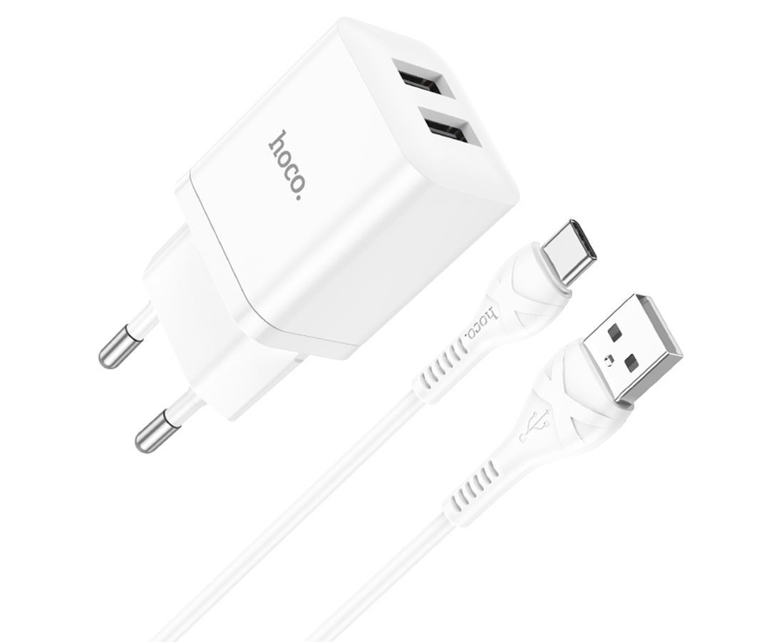 Сетевое зарядное устройство HOCO N25 Maker 2xUSB с Кабелем USB - Type-C, 2.1A, 10W, белый