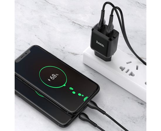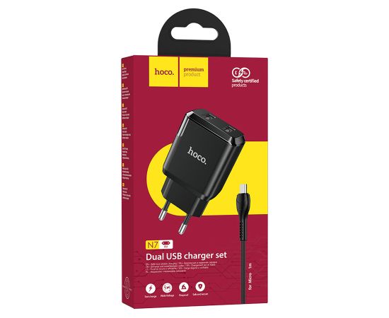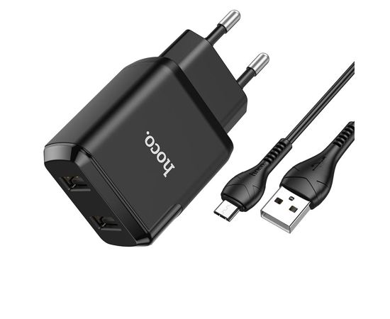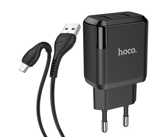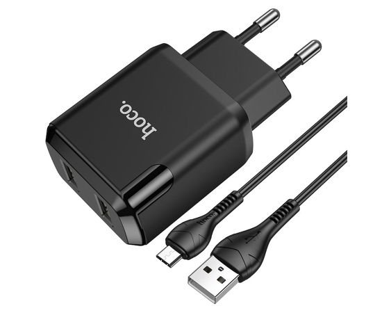 Сетевое зарядное устройство HOCO N7 Speedy 2xUSB с Кабелем USB - Micro, 2.1A, 10W, черный