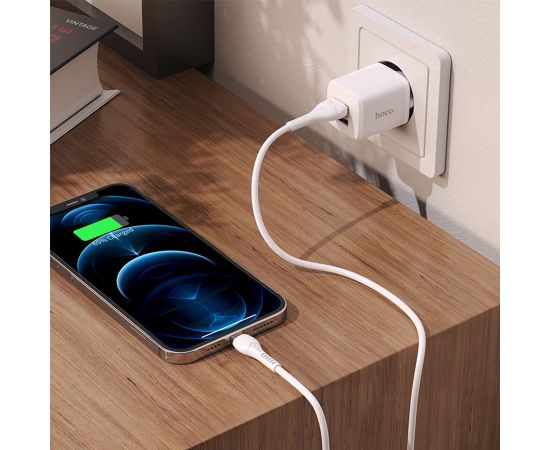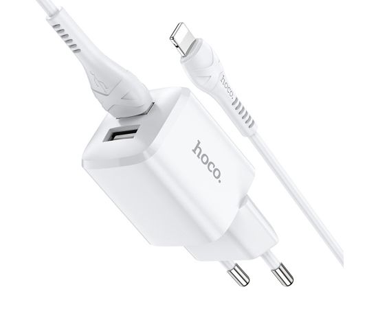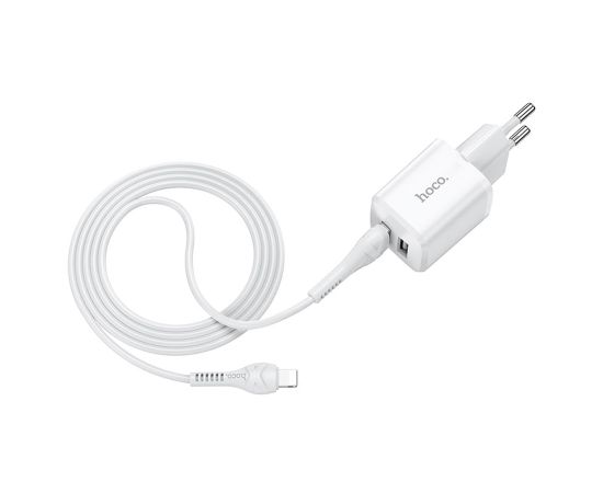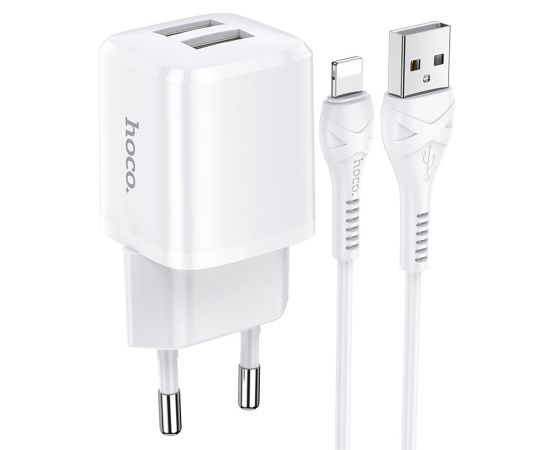 Сетевое зарядное устройство HOCO N8 Briar 2xUSB с Кабелем USB - Lightning, 2.4A, 10.8W, белый