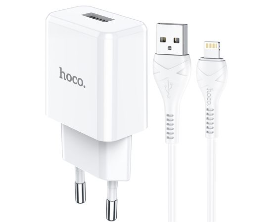 Сетевое зарядное устройство HOCO N9 Especial 1xUSB с Кабелем USB - Lightning, 2.1A, 10W, белый