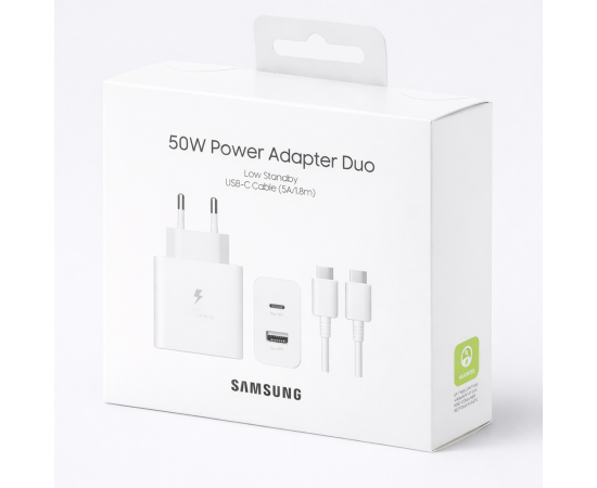 Зарядное устройство Samsung 50 Вт Dual USB-C port Super Fast GaN 1,8 м USB C (EP-T5020) Белый Original
