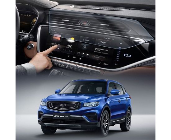 Защитное гибридное стекло Krutoff для экрана мультимедии Geely Atlas Pro 2021