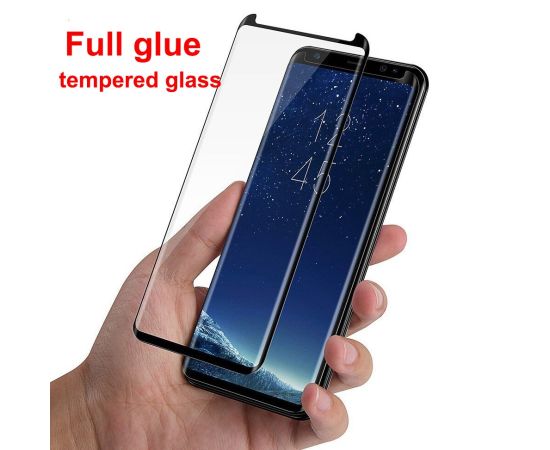 Защитное стекло для Samsung S8 Plus/S9 Plus, Full Glue 3D, с вырезом под камеру и датчики, прозрачный+черная рамка