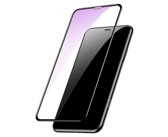 Защитное стекло BASEUS SGAPIPH65-HE01 для iPhone XS Max/11 Pro Max, 0.2mm, Anti-blue, прозрачный+черная рамка